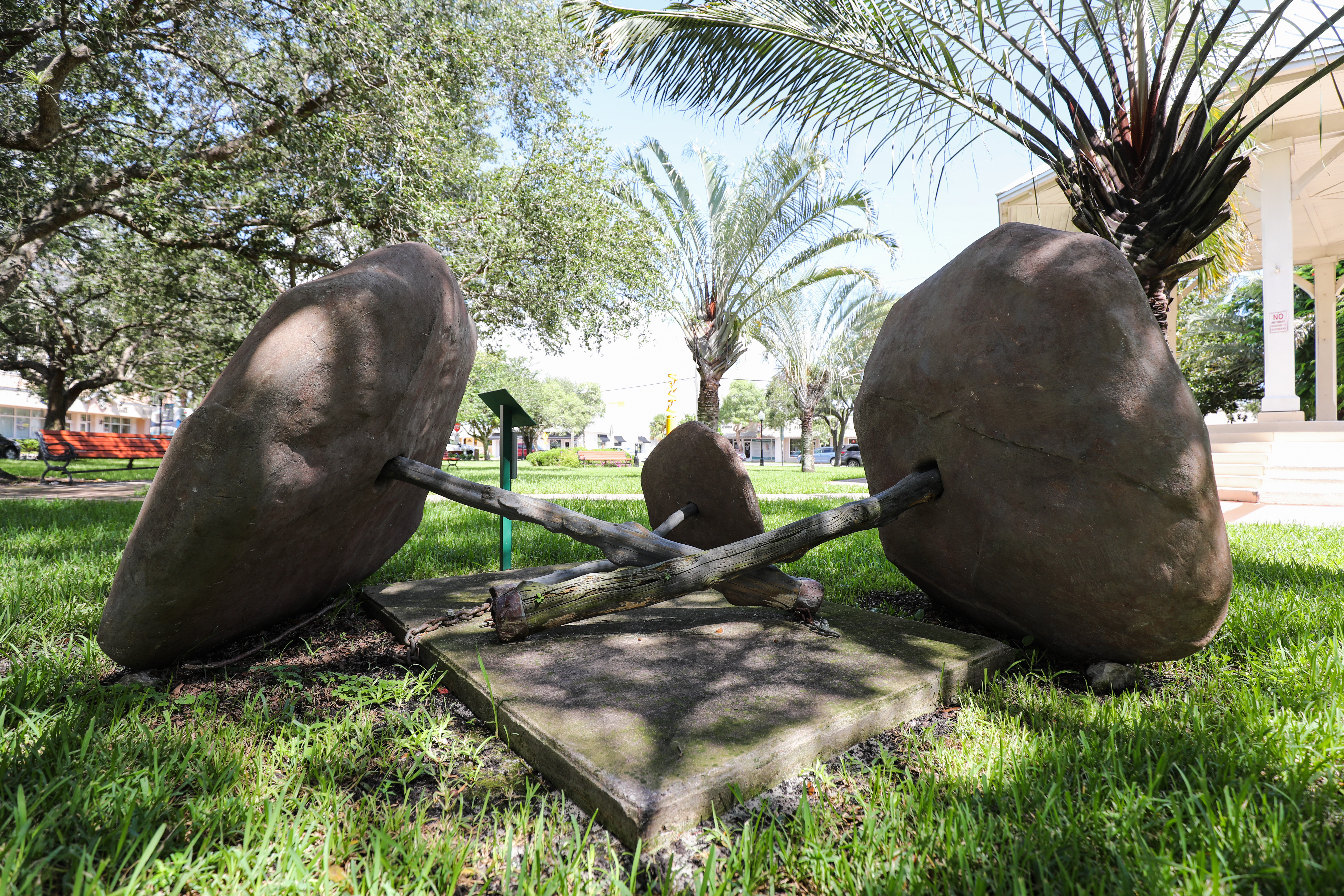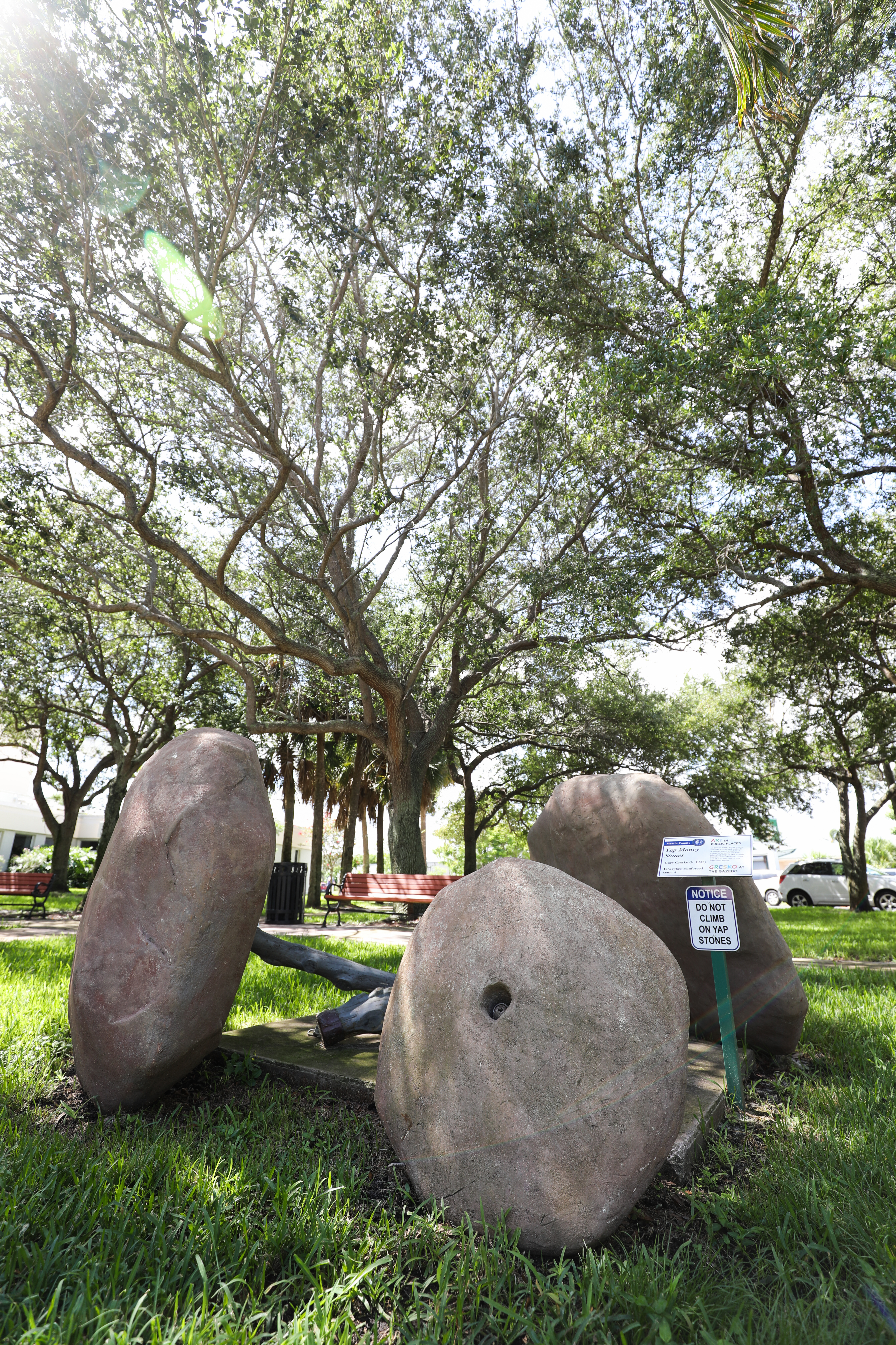 It is time for the artwork in Gazebo Park to be replaced. The Gresko exhibit, installed in 2021, consists of 5 separate, contemporary pieces. Three of those (Red Angle, Transponder and Tumbling Toward the Sun) require some maintenance and may be placed elsewhere in the county. Silent Sounds of Service will be going to Firehouse # 21 on Mapp Road in the Palm City CRA. Approval is requested to decommission Yap Money Stones, the fifth Gresko sculpture. The artwork requires repair, is no longer relevant to the current inventory, and does not have a viable permanent location.